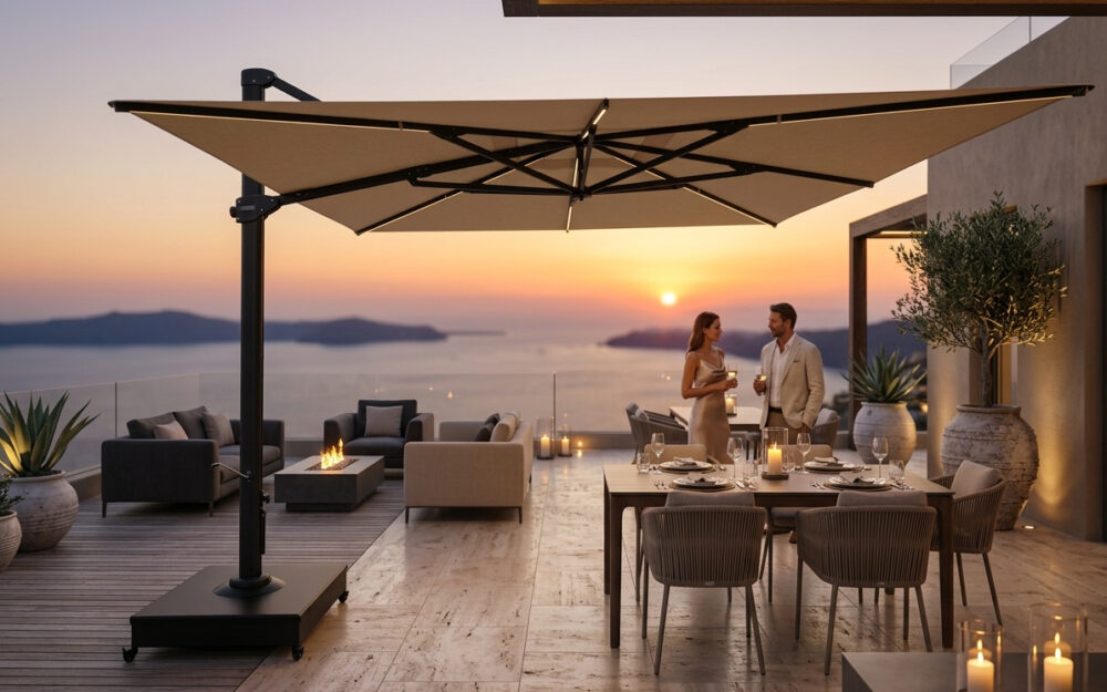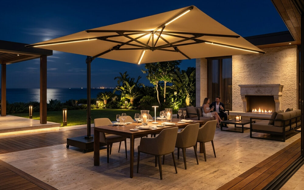 Built for durability, the Nero LED is engineered to withstand intensive use. Its robust construction ensures long-term reliability, while the premium, colourfast Solero O’Bravia fabric maintains its rich appearance season after season, even under strong UV exposure.