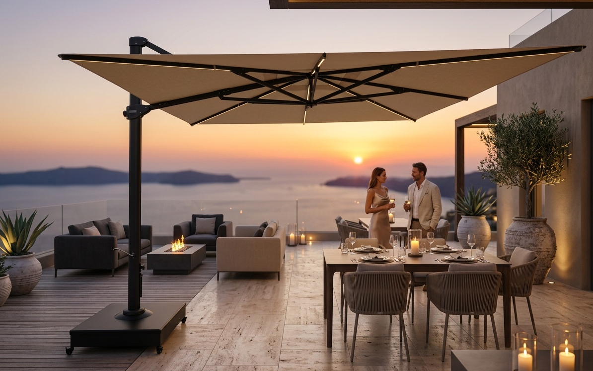 Ease of use is at the heart of the Nero LED. With its smooth rotating mechanism and user-friendly operation, you can effortlessly position the parasol exactly where you need shade throughout the day.